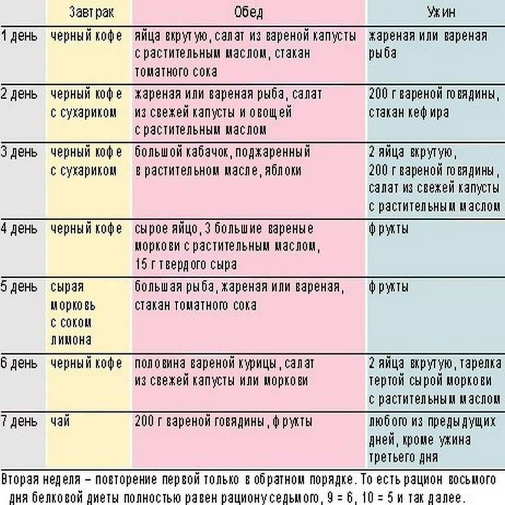 Так, один из вариантов предлагает такое, не отличающееся разнообразием, меню на 3-5 дней. На протяжении всей диеты нужно ежедневно потреблять только свежие овощи в неограниченных количествах, не более 250 граммов отварного мяса птицы без кожицы, кофе и чай без сахара, а также теплую воду с лимонным соком.